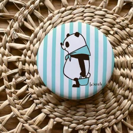 【おみくじ付き】おっきなパンダバッジ 水色ストライプ