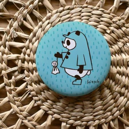 【おみくじ付き】おっきなパンダバッジ レインコートパンダ てるてる坊主