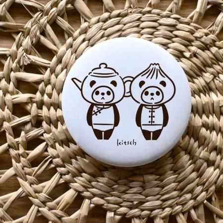 【おみくじ付き】おっきなパンダバッジ カブリモノ急須と肉まん